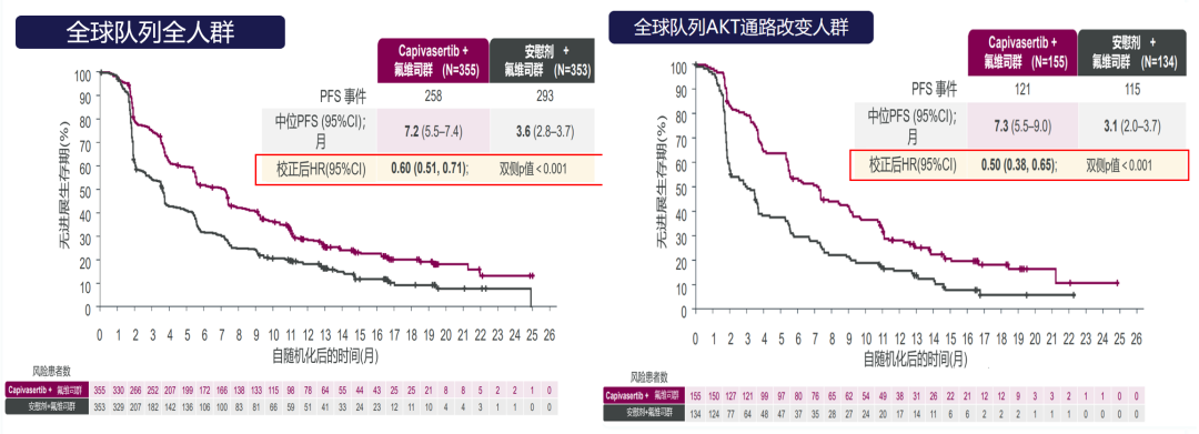 △CAPItello-291研究全球队列全人群和AKT通路改变人群的PFS K-M曲线