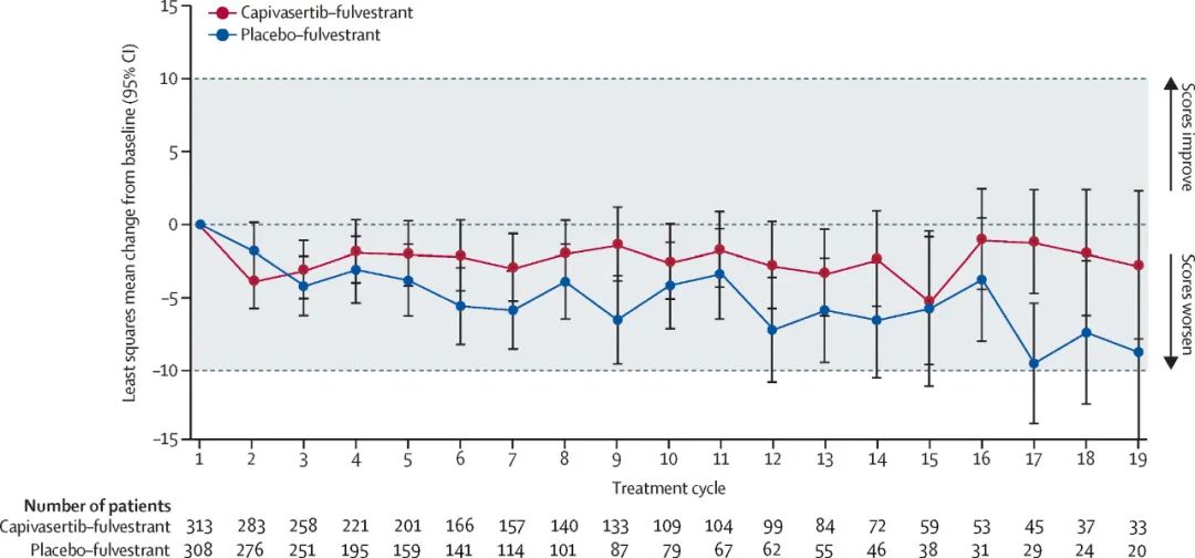 △CAPItello-291研究中,卡匹色替可以有效延长QLQ-C30总体健康状况/生活质量恶化中位时间:24.9 vs 12.0个月(HR 0.70,95%CI:0.53~0.92)