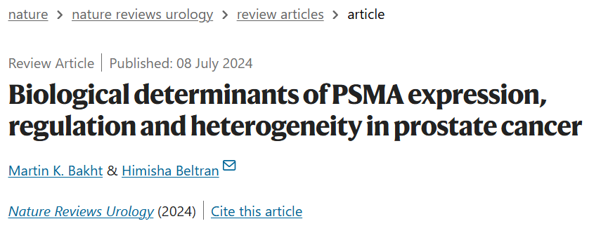 Bakht,Martin K.,and Himisha Beltran.Biological determinants of PSMA expression,regulation and heterogeneity in prostate cancer.Nature Reviews Urology(2024):1-20.