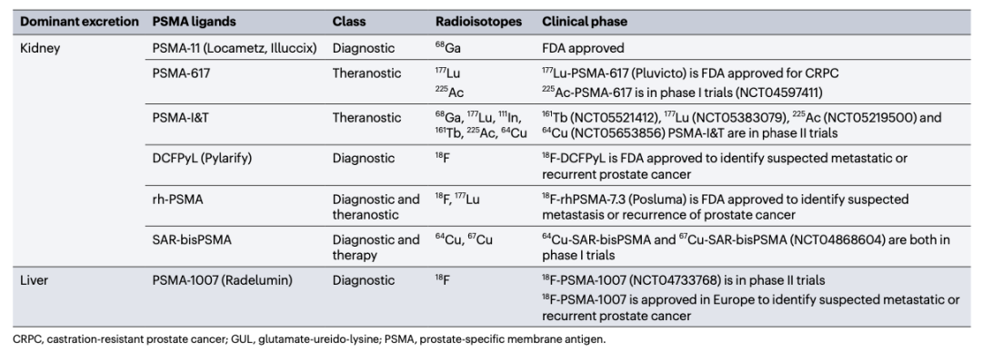 表1基于GUL的PSMA放射性配体