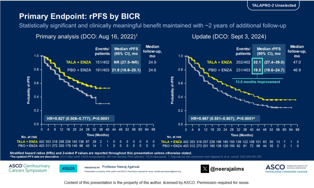 曾浩教授(主持人):Agarwal教授,您在ASCO GU大会上分享的TALAPRO-2研究成果令人瞩目,尤其是在全人群中取得的OS阳性结果。请您为我们简要介绍一下这项研究的整体设计及其最核心的结果。