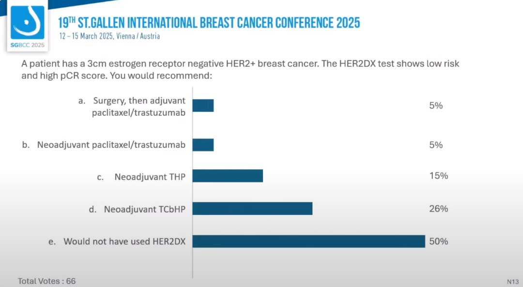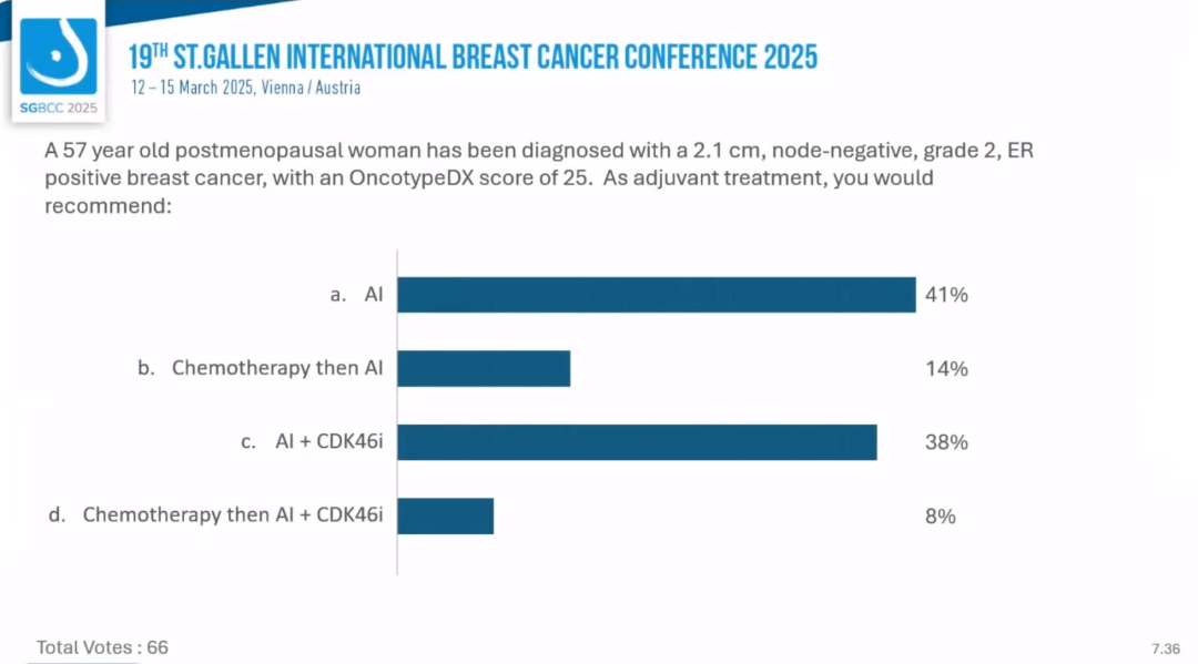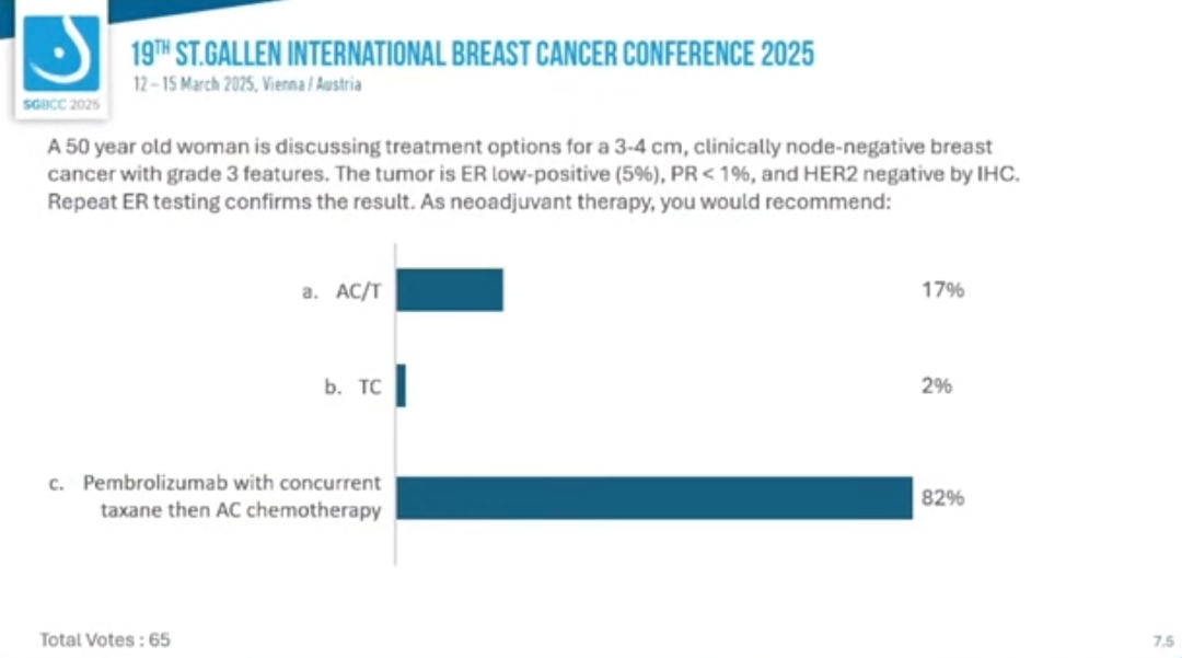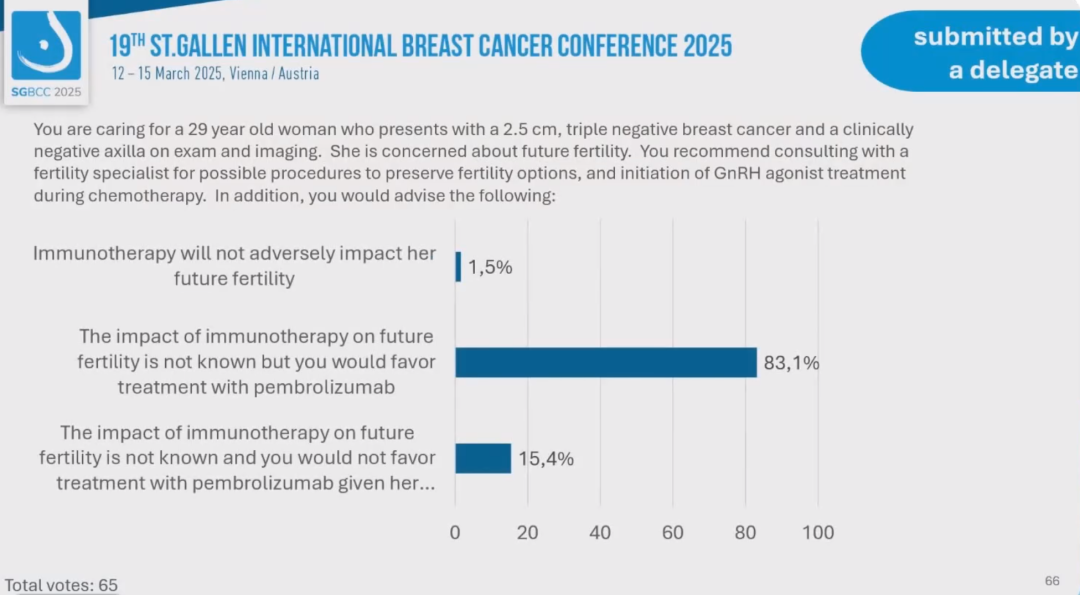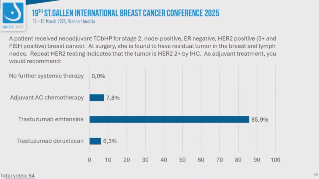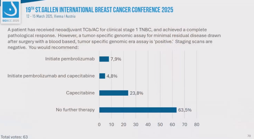 编者按:第19届St.Gallen国际乳腺癌大会(SGBCC 2025)于当地时间2025年3月12~15日在音乐之都维也纳举行。大会的最后一天,专家投票压轴登场。《肿瘤瞭望》整理了包括三阴性乳腺癌、HER2阳性乳腺癌、激素受体阳性乳腺癌在内的系统治疗专家投票,现成文如下,与大家一起感受早期乳腺癌治疗决策的圣加伦氛围。