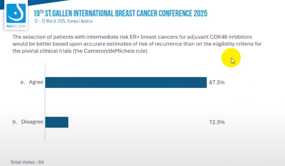 (27)对于中危ER阳性乳腺癌患者,辅助CDK4/6抑制剂的选择应基于精准的复发风险评估,而非直接套用关键临床试验的入选标准(Cameron/deMichele规则)