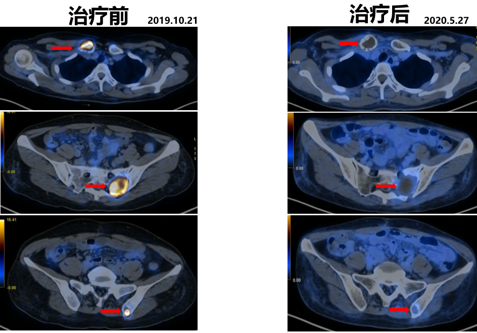 2020.05.27复查PET-CT病灶稳定,代谢较治疗前明显减低。影像学评估SD。
