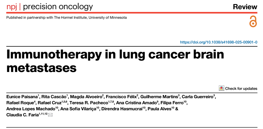 文章来源:Eunice,Paisana,Rita,Cascão,Magda,Alvoeiro et al.Immunotherapy in lung cancer brain metastases.[J].NPJ Precis Oncol,2025,9:0.