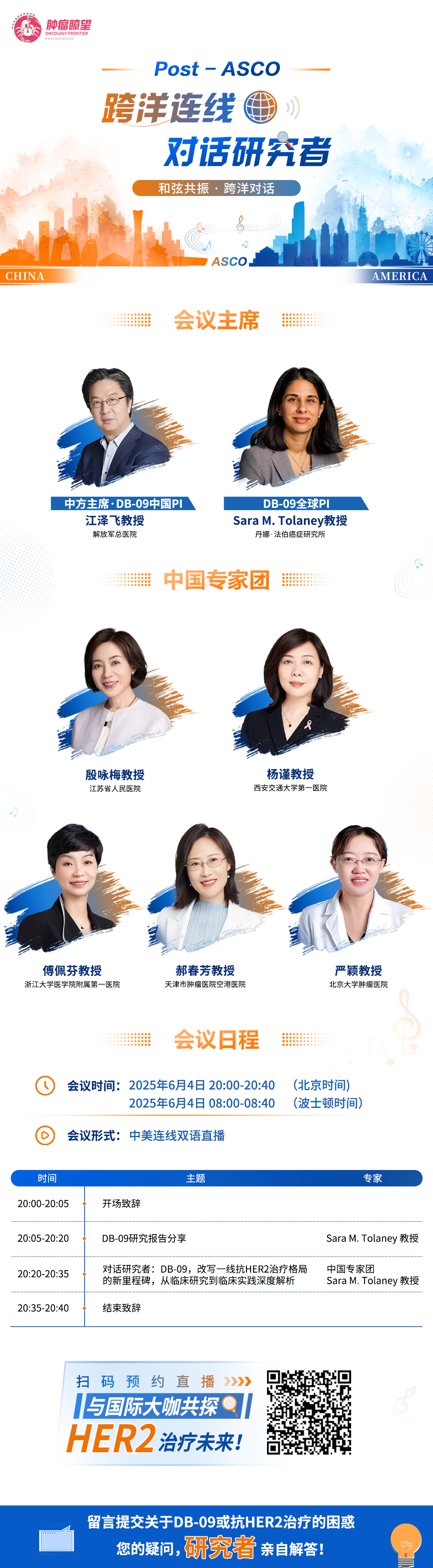 跨洋连线,对话研究者! 江泽飞教授领衔对话Sara M.Tolaney教授,6月4日晚20:00双语直播DB-09为您答疑