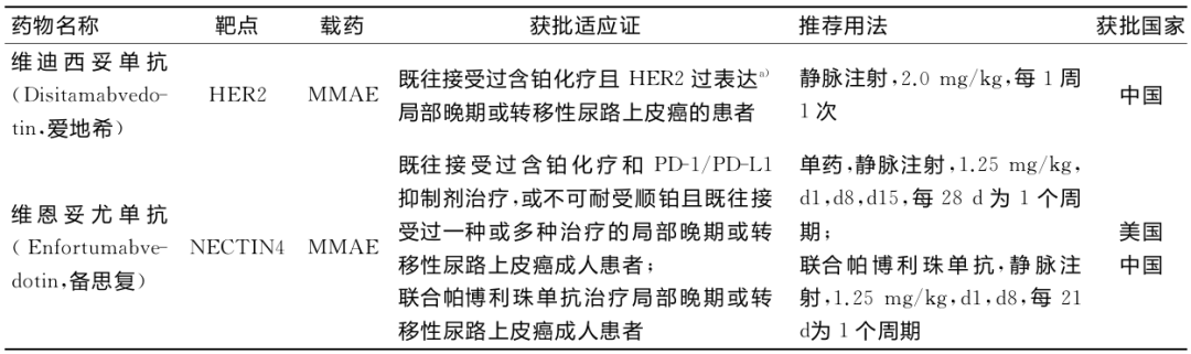 表1已获批上市治疗尿路上皮癌的ADC