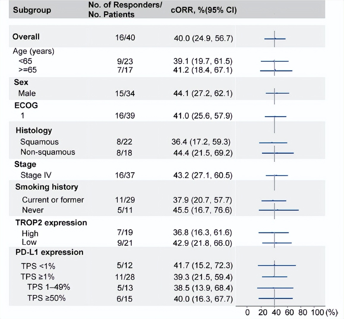 ?在TROP2低表达患者中,ORR分别为42.9%和83.3%;在TROP2高表达患者中,ORR分别为36.8%和68.2%。同样地,TROP2表达与客观缓解率之间未显示出显著相关性。