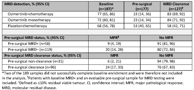 NeoADAURA研究的微小残留病灶(MRD)分析:新辅助奥希替尼±化疗用于可切除的EGFR突变(EGFRm)NSCLC