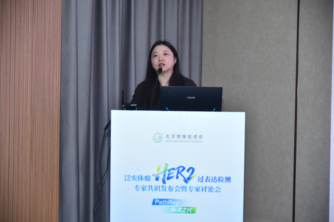 中国医学科学院肿瘤医院饶薇教授在演讲报告中,解读《泛实体瘤HER2过表达检测专家共识》并分享泛实体瘤HER2诊疗进展。饶薇教授指出,这是首个用于指导泛实体瘤HER2过表达检测的专家共识,将有效解决乳腺癌、胃癌以外多种实体瘤中HER2过表达检测标准缺失的问题。《共识》针对适用人群与检测时机、检测方法、样本类型与处理、报告解读、质量控制等关键问题,结合最新的循证医学证据和我国国情,提出了7条专家建议。