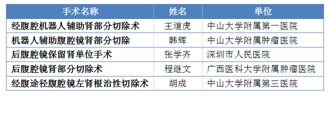 此场广州分站赛,经过初步筛选,入围5例手术视频,最终将有2例晋级。手术名称及选手信息如下:
