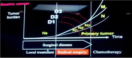 通常来说,原发性胃癌患者,根据其淋巴结转移和器官转移的情况不同,而采取不同的处理方式。原位癌未发生淋巴结转移多采取局限性切除;发生了N1、N2和N3站淋巴结转移的,通常分别采取D1、D2和D3根治性手术;而如果发生其他器官转移,则一般先采取化疗的方式(见图1)。