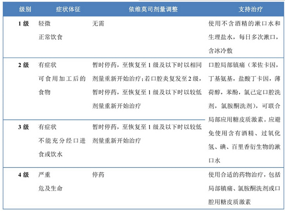 表1. 依维莫司相关口腔炎管理及剂量调整推荐