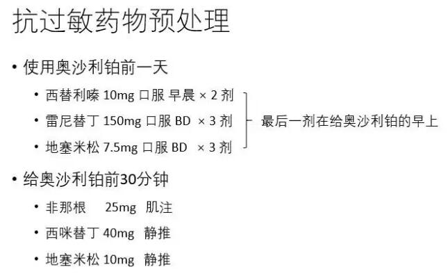 奥沙利铂是胃肠道恶性肿瘤化疗最主要药物之一。然而约有10%∽24%的患者在使用奥沙利铂时会出现急性超敏反应,而且发生率随着奥沙利铂使用的增加而增加。急性超敏反应可能导致风疹、血管性水肿、过敏、甚至死亡。因此,大多数临床医师会选择停用奥沙利铂,改用其他化疗药物,这很有可能影响患者的治疗疗效、增加治疗毒性和增加医疗费用。
