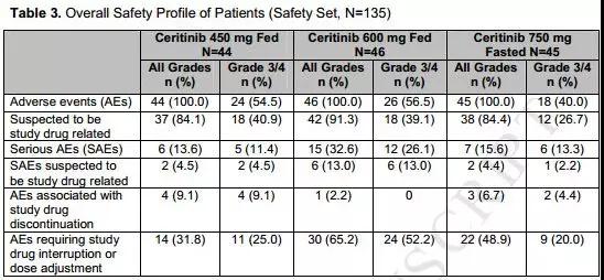 图2  ASCEND8研究中不同剂量塞瑞替尼的安全性数据