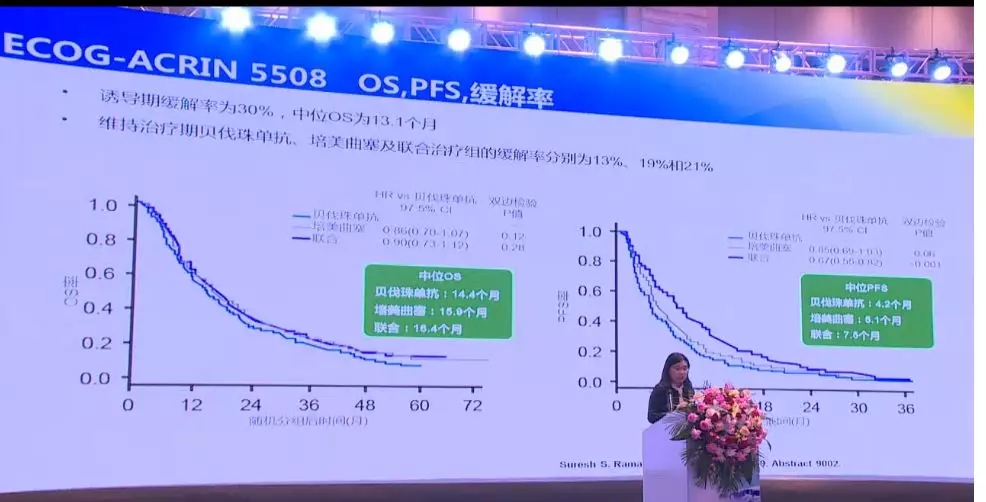 总体来讲,贝伐珠单抗+培美曲塞双药维持可改善PFS,不能够改善OS,我们可以选择单药维持,培美曲塞和贝伐珠单抗维持治疗皆可。