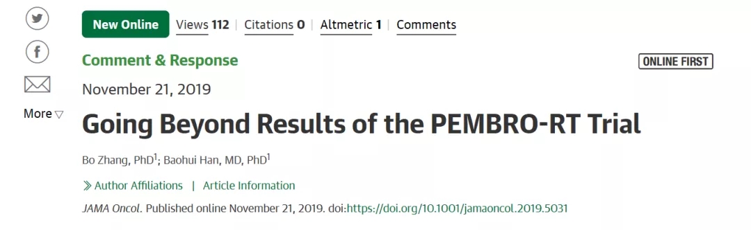 韩宝惠教授JAMA ONCOL发表述评:免疫检查点抑制剂联合放疗:强强联合,但尚不足够