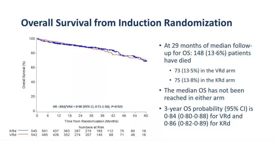 ENDURANCE研究中,KRd方案在PFS及OS上并无明显提升。