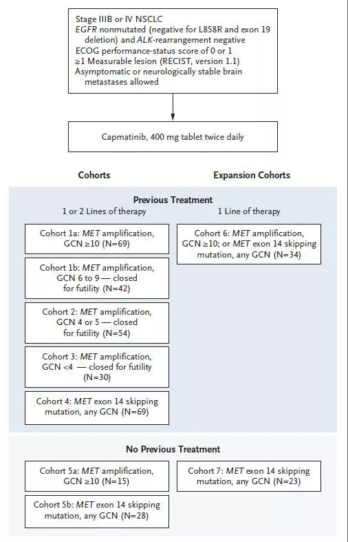 在2020年1月进行最终分析时,MET扩增拷贝数低于10的患者,即队列(1b、2、3),因疗效较差而被提前关闭。