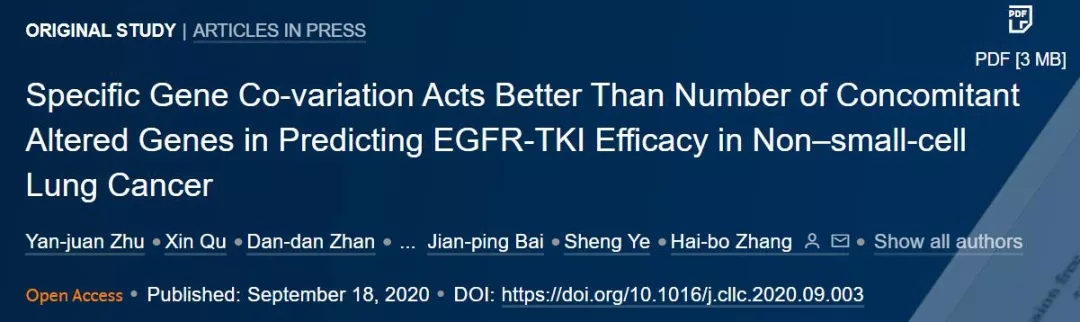 尽管EGFR-TKI是携带EGFR敏感突变NSCLC患者的一线标准治疗,但患者的客观反应存在巨大差异。既往研究发现,携带共突变的NSCLC患者效果较差。近期,来自我国学者发现,特定共突变的存在可能比共突变的数量更重要。研究结果于9月18日全文发表于Clinical Lung Cancer杂志。