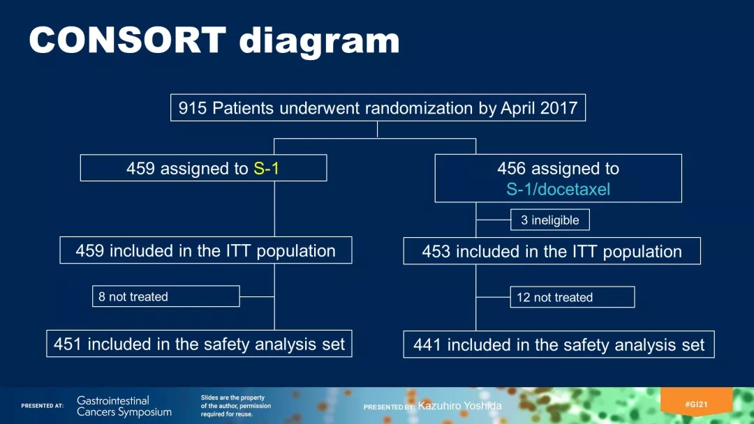 在近期举行的2021年美国临床肿瘤学会胃肠道肿瘤研讨会(ASCO GI)上,研究第一作者、日本岐阜大学医学院外科肿瘤学家Kazuhiro Yoshida博士代表研究团队报告了该研究中期结果(ABSTRACT 159)。