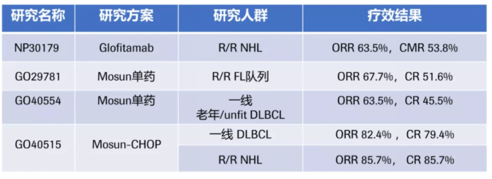 对于占比90%以上的非霍奇金淋巴瘤(NHL),也有很多进步。在分子分型、基因检测基础上进一步的细化分层,寻找靶点方面,在国内外都取得了一定的进步。除此以外,也有一些新药进展,如在B细胞淋巴瘤方面,有很多的新型抗体诞生。值得期待的是,我们目前完成了CD79B的单克隆抗体Polatuzumab vedotin的临床试验,希望能够在今年获得国家的上市批准,相信它将会为B细胞淋巴瘤的治疗带来一些新的选择(表1,图3)。