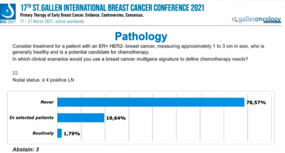 患者56岁女性,ER/PR强阳性,肿瘤2.5cm,腋窝4、5、6枚淋巴结阳性,你会考虑使用基因组分析吗?患者能够接受化疗,但如果化疗获益不大她更愿意避免化疗。