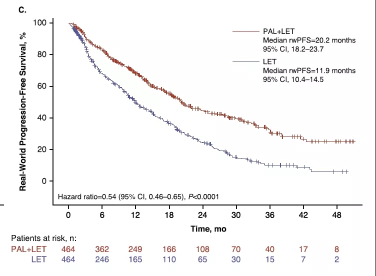 图3. PSM调整后哌柏西利+LET与LET组的rwPFS