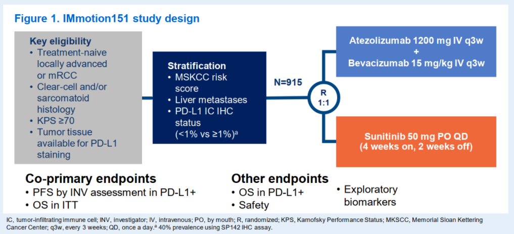 IMmotion151:Atezo联合Beva对比Suni治疗局部进展或转移性肾癌患者的总生存率以及基因表达和临床结局相关性探索性分析的结果更新