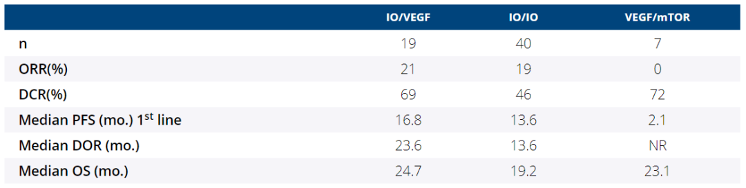 虞巍教授:第三个问题是关于非透明细胞肾细胞癌(nccRCC)的。由于此类肾癌发病率低,我们可获得的相关数据有限。在这次会议上,您为我们带来一项关于治疗晚期nccRCC患者的ORACLE研究。在这项的研究中,不同的联合治疗模式可以给非透明细胞肾细胞癌患者带来不同的ORR和PFS获益。您在临床实践中会怎样推荐患者进行联合治疗?