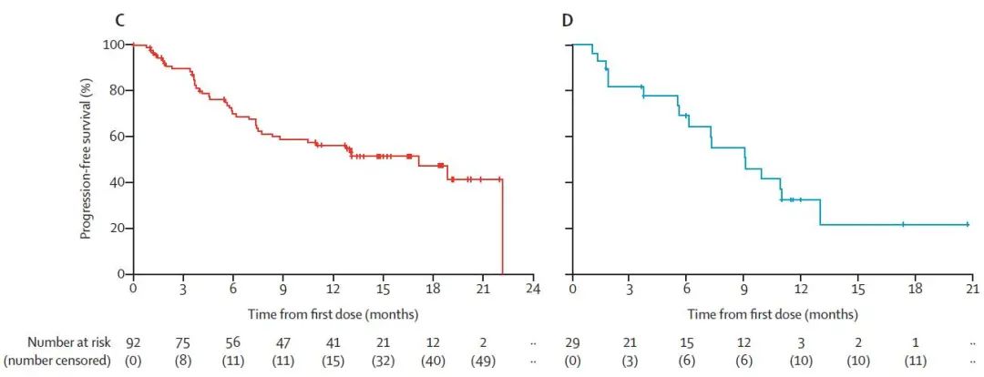 经治患者中位PFS为17.1个月,中位OS尚未达到;初治患者的中位PFS为9.1个月(图3)。