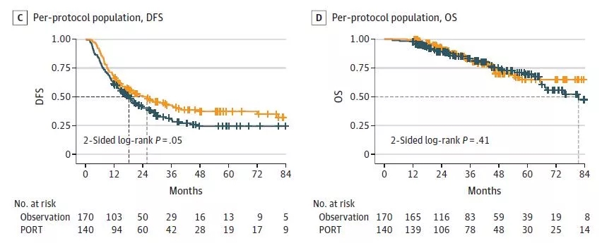 Hui Z, Men Y, Hu C, et al. Effect of Postoperative Radiotherapy for Patients With pIIIA-N2 Non–Small Cell Lung Cancer After Complete Resection and Adjuvant Chemotherapy: The Phase 3 PORT-C Randomized Clinical Trial[J]. JAMA oncology, 2021.