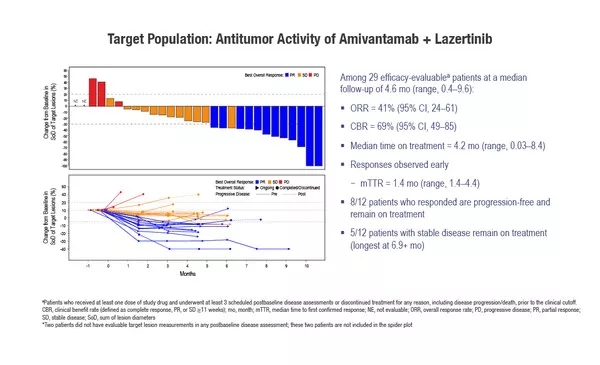 荷兰鹿特丹伊拉斯姆斯医学中心的Anne-Marie Dingemans评论这些数据:“这两项研究的早期疗效结果以及可接受的安全性数据令人鼓舞。在CHRYSALIS研究中,患者人群未选择的amivantamab+拉泽替尼组获得较高的ORR和CBR可能出乎意料,但这些数据仍然很重要,并强调了解其作用机制的重要性。”