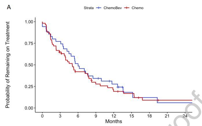 这是一项双中心、回顾性研究,纳入接受奥希替尼治疗后进展且适合接受含铂双药化疗的患者。最终单纯化疗组、化疗联合免疫治疗及化疗联合贝伐珠单抗治疗组分别入组57例、12例和35例患者。化疗联合免疫治疗组OS最差,与单纯化疗组和化疗联合贝伐珠单抗组相比,HR分别为2.66及2.37,但是,化疗联合贝伐珠单抗与单纯化疗组相比,OS未观察到差异,HR=1.50。化疗联合免疫组、单纯化疗组和化疗联合贝伐珠单抗组的中位OS分别为10.9个月、12.0个月和15.2个月。