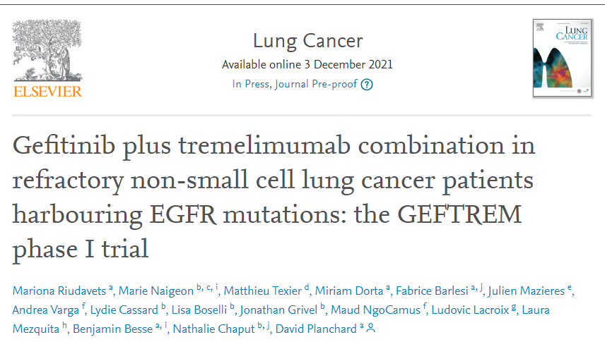 Tremelimumab是一款针对CTLA-4的免疫检查点抑制剂,近期 Lung Cancer杂志公布了该药联合吉非替尼治疗一代TKI耐药后的患者,但结果令人失望。