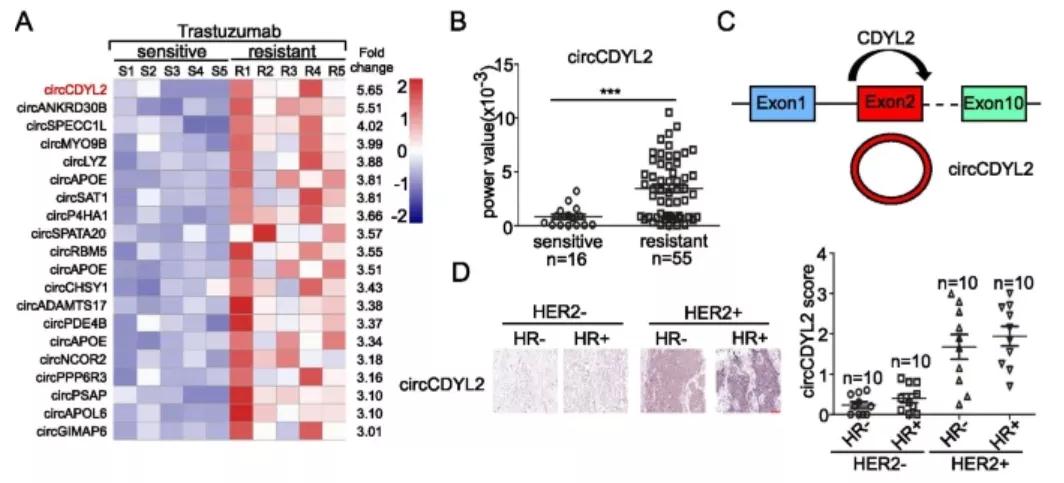 首次揭示circRNA circCDYL2对曲妥珠单抗耐药的重要作用