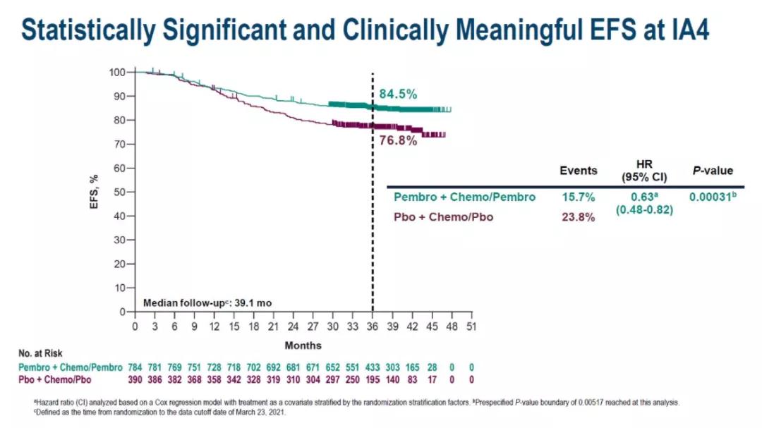 ΔKEYNOTE-522研究免疫组和化疗组的EFS K-M曲线