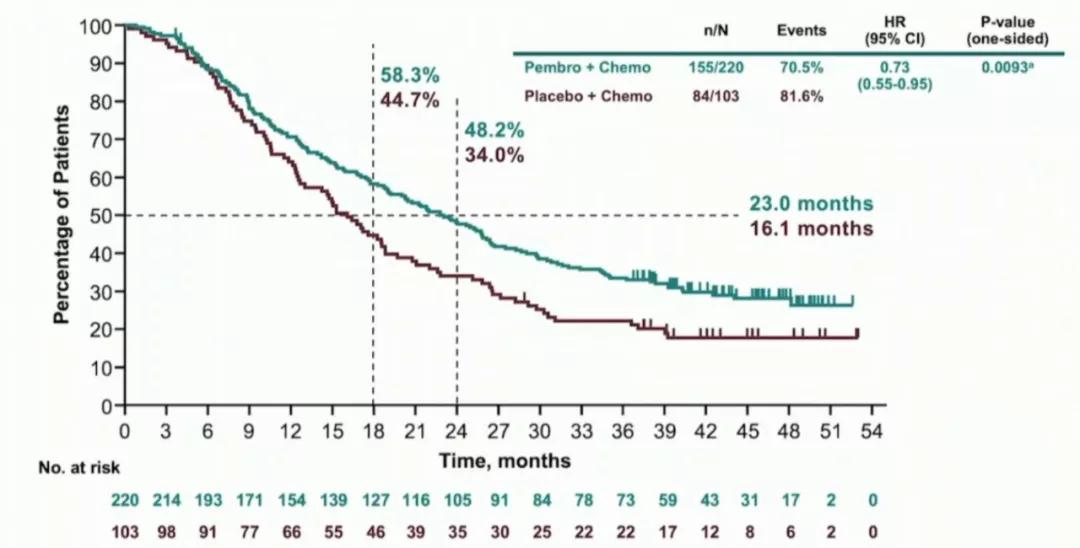 ΔKEYNOTE-355研究免疫治疗和化疗组OS K-M曲线