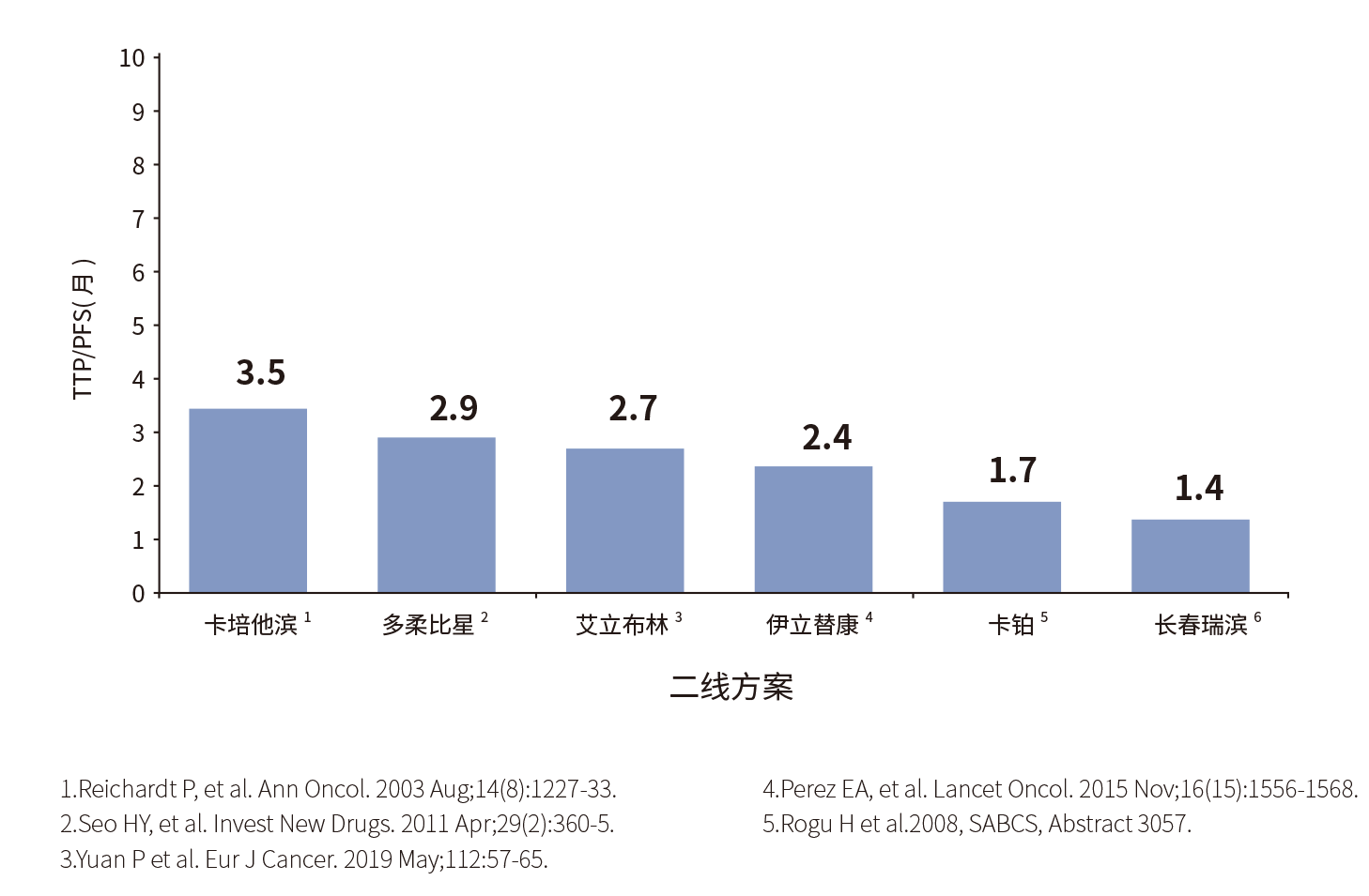 Δ不同二线化疗方案的TTP/PFS获益情况