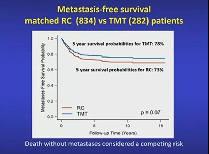 ● 5年无转移生存率为73%vs 78%,P=0.07;