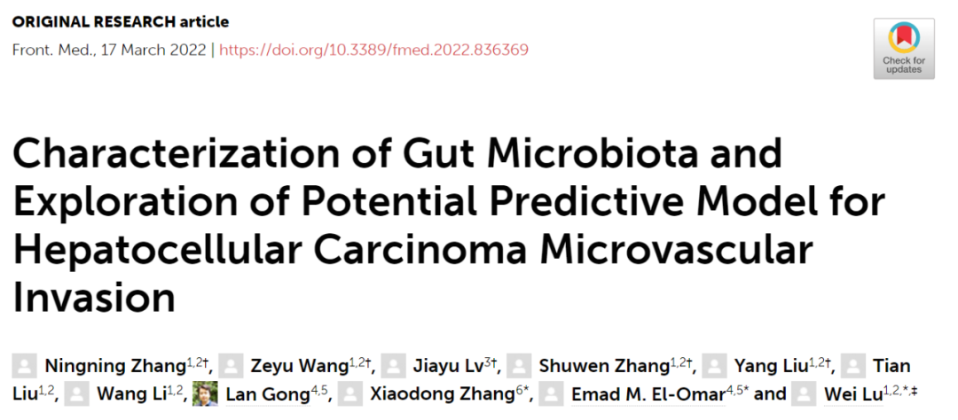 第57届欧洲肝病研究学会年会(EASL2022)暨2022年国际肝脏大会(ILC 2022)上,我国天津医科大学肿瘤医院陆伟教授团队介绍了基于肠道微生物的特征分析,构建的一套预测HCC潜在微血管侵犯风险的临床预测模型(摘要编号:SAT568),为临床患者治疗提供了有力工具。该项研究结果也于近日发表在Frontiers in Medicine杂志(影响因子5.09)。