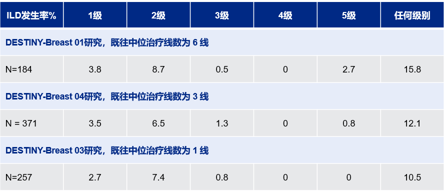 △DESTINY-Breast01、03、04研究的ILD/非感染性肺炎事件