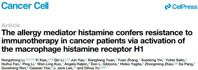 肿瘤瞭望:日前,您团队开展的抗组胺药物逆转乳腺癌免疫治疗的相关研究发表于Cancer Cell杂志,请您为我们介绍一下该项研究的背景及相关结果。