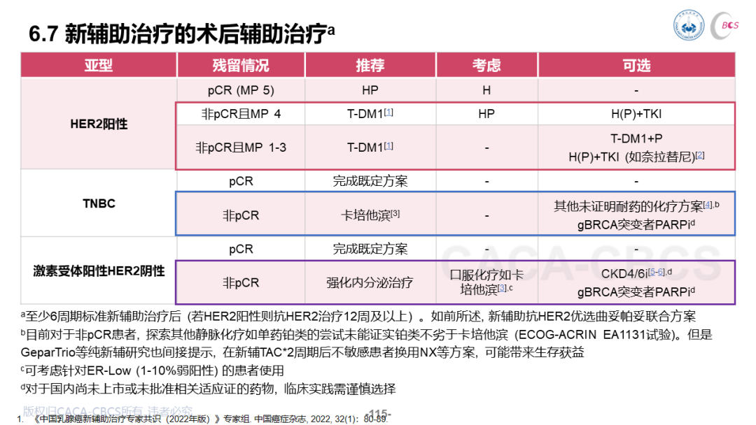 1、pCR患者的辅助治疗方案