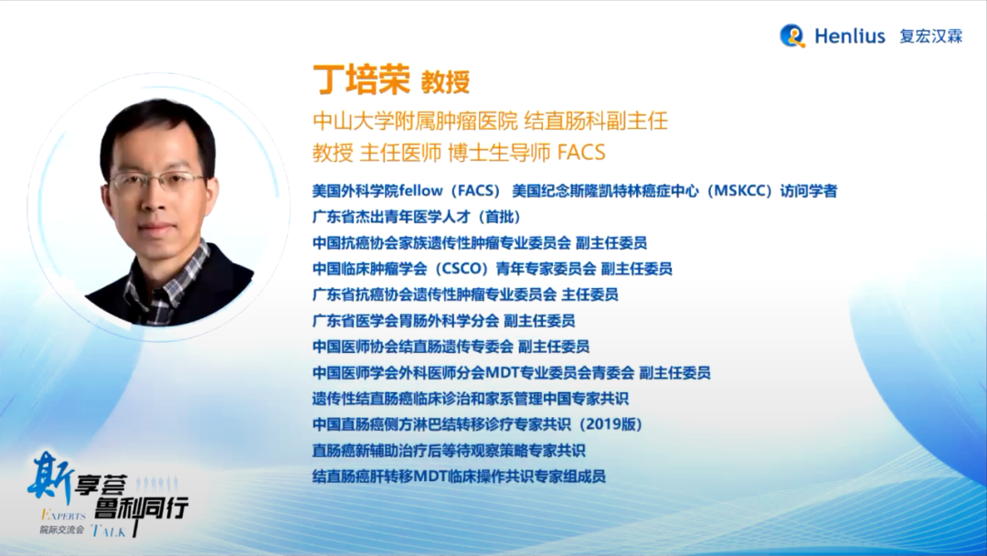 编者按:2022年8月19日,斯享荟·鲁利同行院际交流会云端召开。本次会议由中山大学附属肿瘤医院丁培荣教授、中山大学附属第六医院黄美近教授、陆军特色医学中心陈川教授担任大会主席,在丁培荣教授讲解了《MSI-H结直肠癌免疫治疗的临床实践及思考》后,中山大学附属肿瘤医院唐京华教授、中山大学附属第六医院张剑威教授、陆军特色医学中心王斌教授依次分享了典型病例,并由三家医院MDT团队分别对病例展开详细分析,为共同探寻结直肠癌免疫治疗新动向提供重要意义。