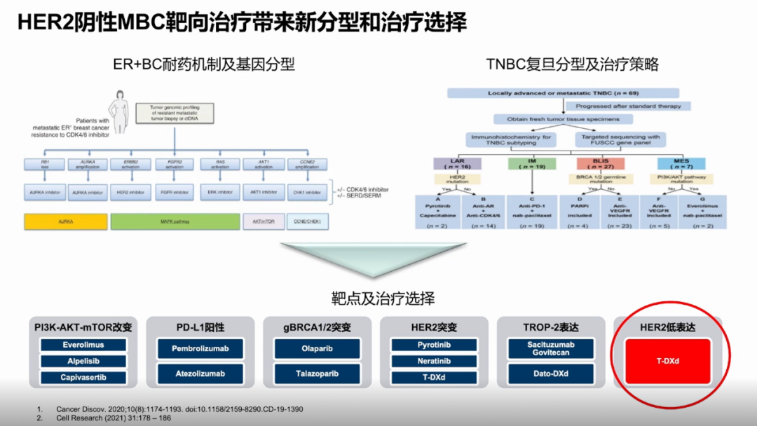 随着T-DXd在HER2低表达领域取得的巨大突破,CSCO和CACA指南已经明确提出此类患者的定义。尽管HER2低表达约占全体乳腺癌的50%左右,但传统的抗HER2治疗对此类患者无效,目前主要归入HR+/HER2-和TNBC的治疗范畴,后线治疗选择十分有限。