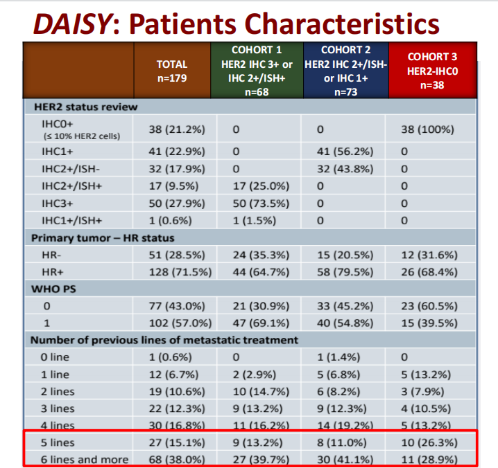 △DAISY研究中不同HER2水平队列,对T-DXd的治疗反应也不同
