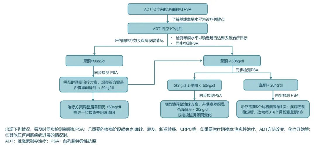 图2.ADT治疗期间的睾酮监测和管理规范化流程图[12]