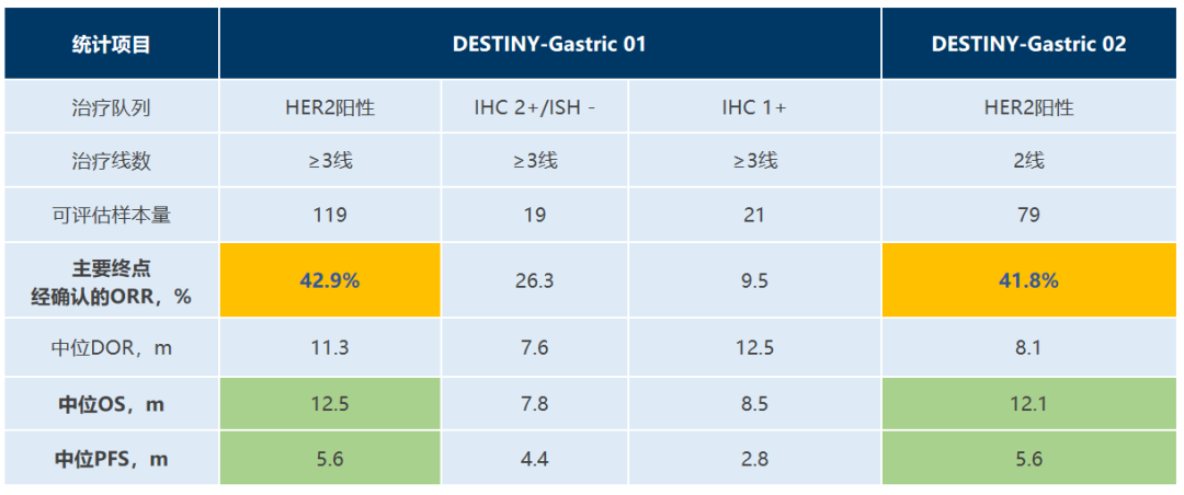 据中山大学肿瘤防治中心骆卉妍教授介绍,DESTINY-Gastric01与DESTINY-Gastric02非头对头比较发现,T-DXd在亚洲人群及西方人群中展现出一致疗效及安全性,经确认的ORR分别为42.9%和41.8%(图4)。