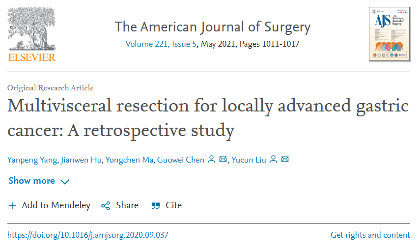 总之,接受多脏器切除的cT4b胃癌患者具有可接受的死亡率和发病率。多脏器切除的独立预后因素是切除的完整性、广泛的淋巴结受累(>15)、血管癌栓和术后化疗。